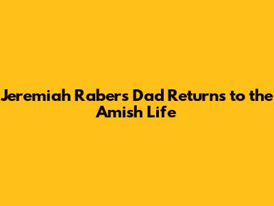 Jeremiah Raber's Dad Returns To The Amish Life