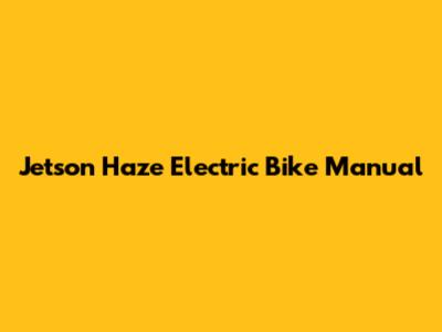 Jetson Haze Electric Bike: Manual & Guide