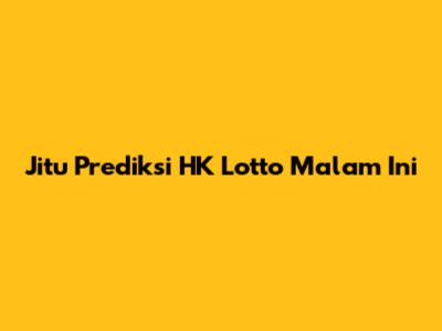 Jitu Prediksi HK Lotto Malam Ini