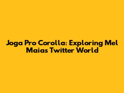 Hey guys! Ever wondered what's buzzing on Mel Maia's Twitter feed? Well, you're in for a treat! We're diving deep into the online world, specifically focusing on the intersection of 'Joga Pro Corolla' and the popular actress, Mel Maia. Buckle up, because we're about to explore the tweets, trends, and everything in between. This exploration isn't just about tweets; it's about understanding how celebrities interact with brands, what catches their (and their followers') attention, and how a simple tweet can spark a whole lot of conversation. We will look at what 'Joga Pro Corolla' is, what Mel Maia has to do with it, and what kind of impact this has on the online community. Let's be real, the internet is a wild place, and celebrity endorsements can seriously influence trends. We're here to break down the key elements, so you can get the full picture. So, let’s get started and unravel the mystery together.