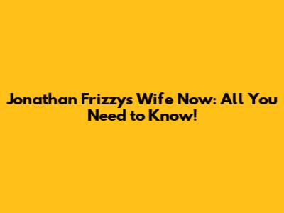 Jonathan Frizzy's Wife Now: All You Need To Know!