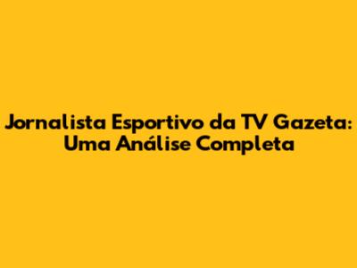 Jornalista Esportivo Da TV Gazeta: Uma Análise Completa