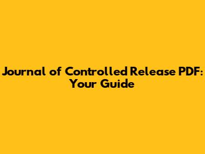 Journal Of Controlled Release PDF: Your Guide