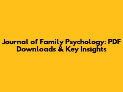 Journal Of Family Psychology: PDF Downloads & Key Insights