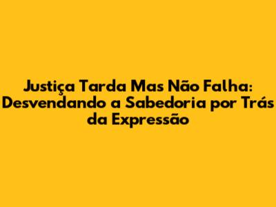 É uma frase que transcende o tempo e a cultura, ecoando em nossos corações e mentes. Ela nos lembra que a verdade sempre prevalecerá, que o bem sempre triunfará sobre o mal e que a justiça, embora possa demorar, eventualmente encontrará seu caminho. Que essa mensagem de esperança e motivação possa nos guiar em nossas vidas, inspirando-nos a ser pessoas melhores, a lutar por um mundo mais justo e a nunca desistir de nossos sonhos. E lembre-se: a justiça pode demorar, mas ela nunca falha. Então, siga em frente, mantenha a fé e confie no processo. A vitória é certa! E, por fim, que a sabedoria contida nesta frase seja uma constante fonte de inspiração e motivação em sua jornada!