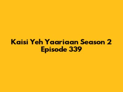 • YouTube: Many episodes are available on YouTube, uploaded by various channels. Just search for "Kaisi Yeh Yaariaan Season 2 Episode 339" and you should find multiple options.