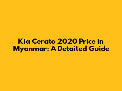 Kia Cerato 2020 Price In Myanmar: A Detailed Guide