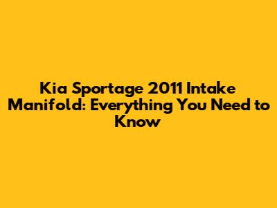 Kia Sportage 2011 Intake Manifold: Everything You Need To Know