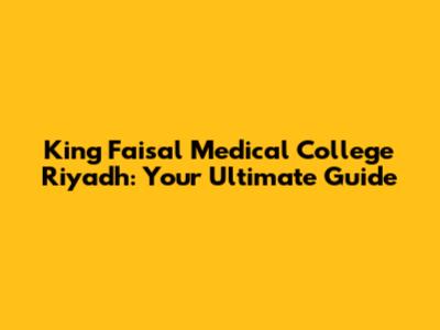 King Faisal Medical College Riyadh: A Comprehensive Guide