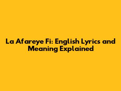 La Afareye Fi: English Lyrics And Meaning Explained