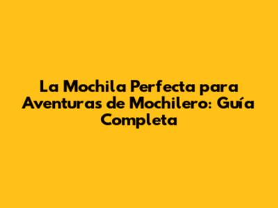La Mochila Perfecta Para Aventuras De Mochilero: Guía Completa
