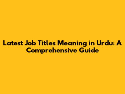 Latest Job Titles Meaning In Urdu: A Comprehensive Guide