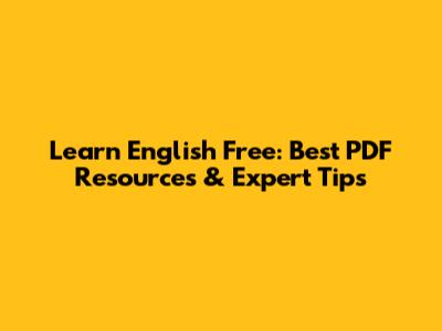 Learn English Free: Best PDF Resources & Expert Tips