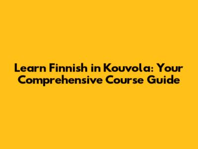 Learn Finnish In Kouvola: Your Comprehensive Course Guide