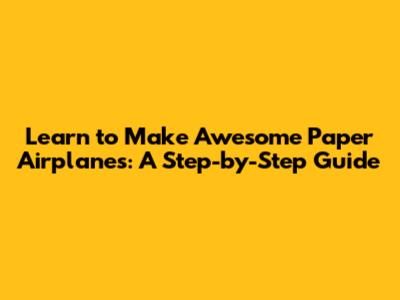 Learn To Make Awesome Paper Airplanes: A Step-by-Step Guide
