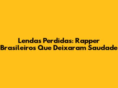 Lendas Perdidas: Rapper Brasileiros Que Deixaram Saudade