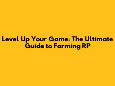 Level Up Your Game: The Ultimate Guide To Farming RP