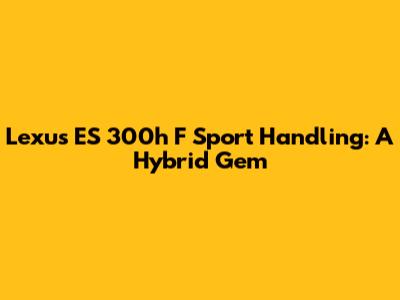Is the ES 300h F Sport Handling for You?