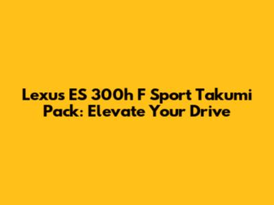 Lexus ES 300h F Sport Takumi: What You Need To Know