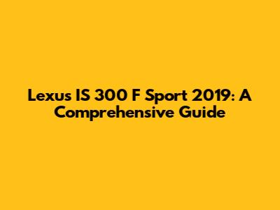 Lexus IS 300 F Sport 2019: A Comprehensive Guide