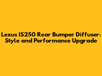 • Fitment: Ensure that the diffuser is specifically designed for the Lexus IS250. A proper fit is crucial for both aesthetics and performance. Read reviews and check the manufacturer's specifications to ensure compatibility.