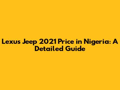 Lexus Jeep 2021 Price In Nigeria: A Detailed Guide