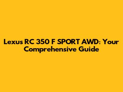Lexus RC 350 F SPORT AWD: Ultimate Guide