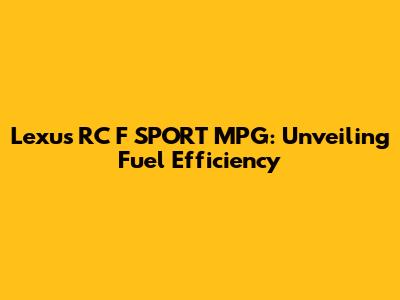 Lexus RC F SPORT MPG: What You Need To Know