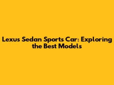 Lexus Sedan Sports Car: Exploring The Best Models