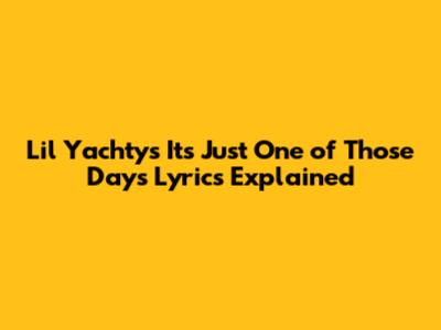 Hey guys! Ever have one of those days? You know, the kind where everything seems to go wrong? Well, Lil Yachty gets it, and he poured all those feelings into his track, "It's Just One of Those Days." Let's dive deep into the lyrics and explore what makes this song so relatable and catchy. We'll break down the verses, the chorus, and even touch on the overall message. So, buckle up and let's decode this awesome track!