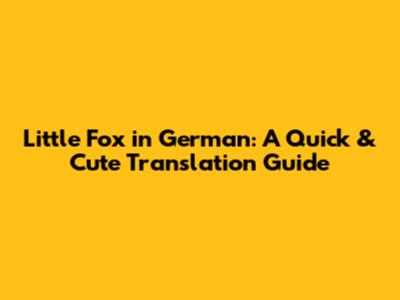 Little Fox In German: A Quick & Cute Translation Guide