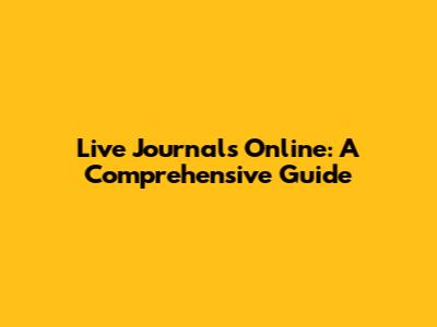 Live Journals Online: A Comprehensive Guide