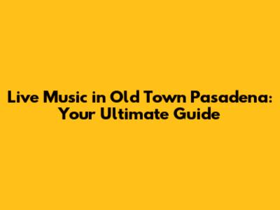 Live Music In Old Town Pasadena: Your Ultimate Guide