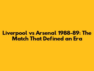 Liverpool Vs Arsenal 1988-89: The Match That Defined An Era