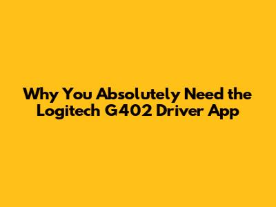 Why You Absolutely Need the Logitech G402 Driver App