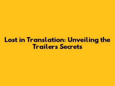 Lost In Translation: Unveiling The Trailer's Secrets