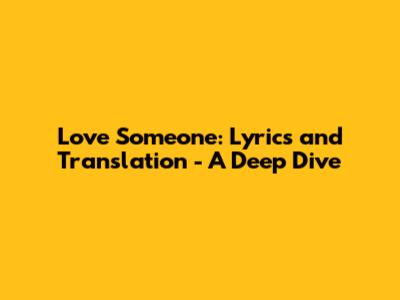 Love Someone: Lyrics And Translation - A Deep Dive