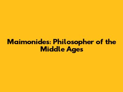 Maimonides: Philosopher Of The Middle Ages