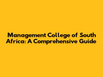 Management College Of South Africa: Guide & Insights