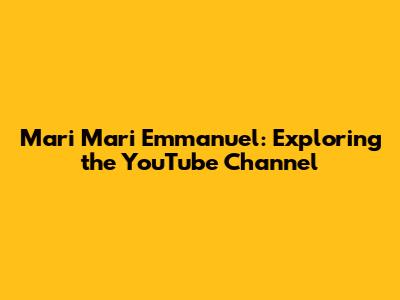 Mari Mari Emmanuel: Exploring The YouTube Channel