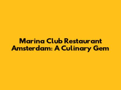Marina Club Restaurant Amsterdam: A Culinary Gem