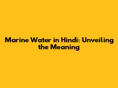 Marine Water In Hindi: Unveiling The Meaning