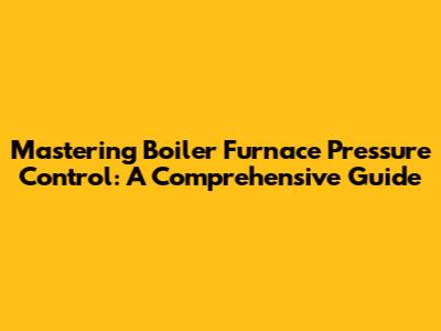 Mastering Boiler Furnace Pressure Control: A Comprehensive Guide