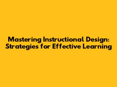 Mastering Instructional Design: Strategies For Effective Learning