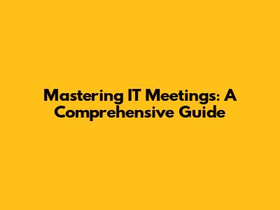 Mastering IT Meetings: A Comprehensive Guide
