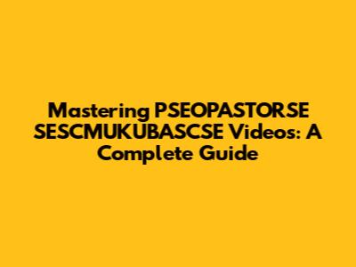 Mastering PSEOPASTORSE SESCMUKUBASCSE Videos: A Complete Guide
