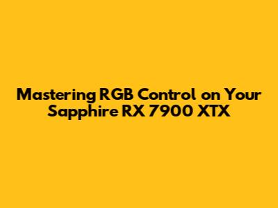Mastering RGB Control On Your Sapphire RX 7900 XTX