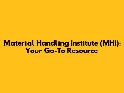 Hey guys! Ever wondered where industry professionals and companies involved in material handling, logistics, and supply chain management turn to for insights, education, and connection? Let's dive into the Material Handling Institute (MHI). This article will give you the lowdown on what MHI is all about, why it's important, and how it can be a game-changer for businesses and individuals alike.