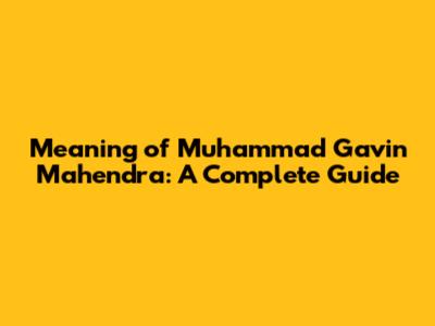 Meaning Of Muhammad Gavin Mahendra: A Complete Guide