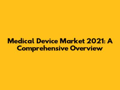 Medical Device Market 2021: A Comprehensive Overview
